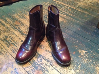 U.S.A MADEのサイドZIPブーツです。 色味はワインレッド 程度はとても良好です。 履いた時のシルエットが良い大人なブーツです。 サイズ表示は8ハーフDです。 プライスは¥12800+taxとなります。