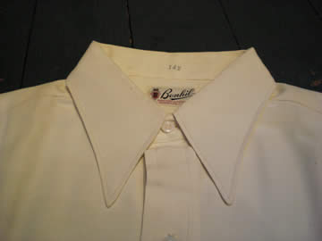 40s頃のドレスシャツD・STOCKです。 素材はコットン100%です。 日焼けやタタミ部分の素材の劣化、ヨゴレなどなく程度は良好です。 サイズ表示は14ハーフ表示です。 プライスは、¥13440-(税込)となります。