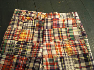 SAKS FIFTH AVENUE のマドラスチェックパッチワークパンツです。 ベルトループがないタイプで、 ウエストを調節するアジャスターがサイドにつきます。 裏地には薄手のガーゼが貼られております。 裾をロールアップすると白いガーゼとの配色となりカワイイです。 落ち着いた色目の配色のパッチワークで、おすすめです。 サイズはウエスト31インチレングス30インチ プライスは、¥7140-(税込)となります。
