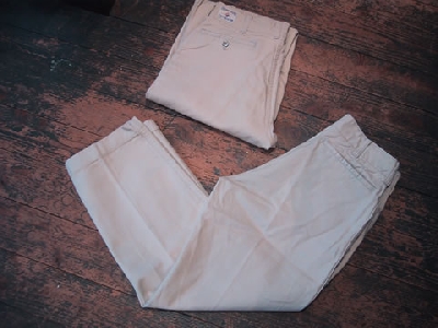 サイズは、モカブラウンがW32表記、生成りがW30表記、