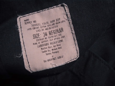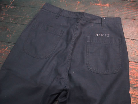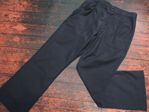 以前にも紹介しました、US Navy ユーティリテーパンツです。1980年のスペックがついています。素材は、Cotton 50%×Nylon 50% ながらコシがありサテン地のような上品な素材感です。またシルエットは少しフレアーがかったものとなっています。とても使い勝手の良いパンツで、おすすめの一本です。サイズ表記は 34R、 実寸 W33インチ、L30.5インチ、値段は ¥10290-(税込)となります。